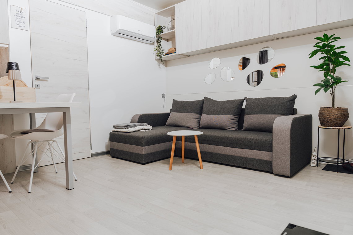 Dnevna soba s sedežno garnituro in raztegljivim ležiščem