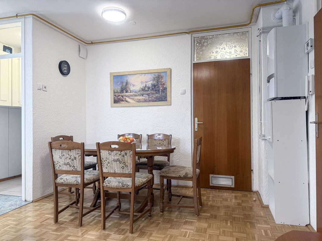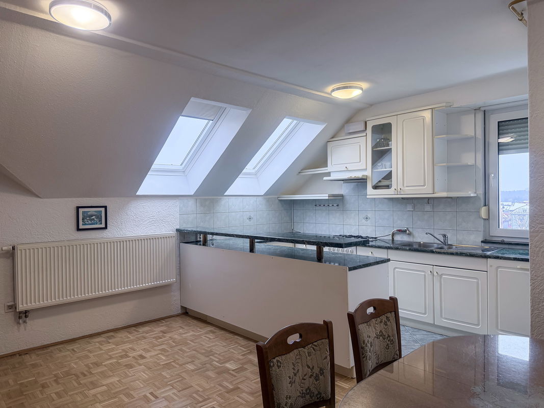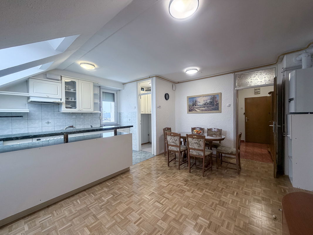 Stanje: stanovanje je v dobrem in vzdrževanem stanju, zadnja večja obnova je bila v letu 2016 z beljenjem in obnovo parketa v dnevnem prostoru ter menjavo oken v sklopu sanacije fasade, strešna okna so bila zamenjana v sklopu sanacije strehe.