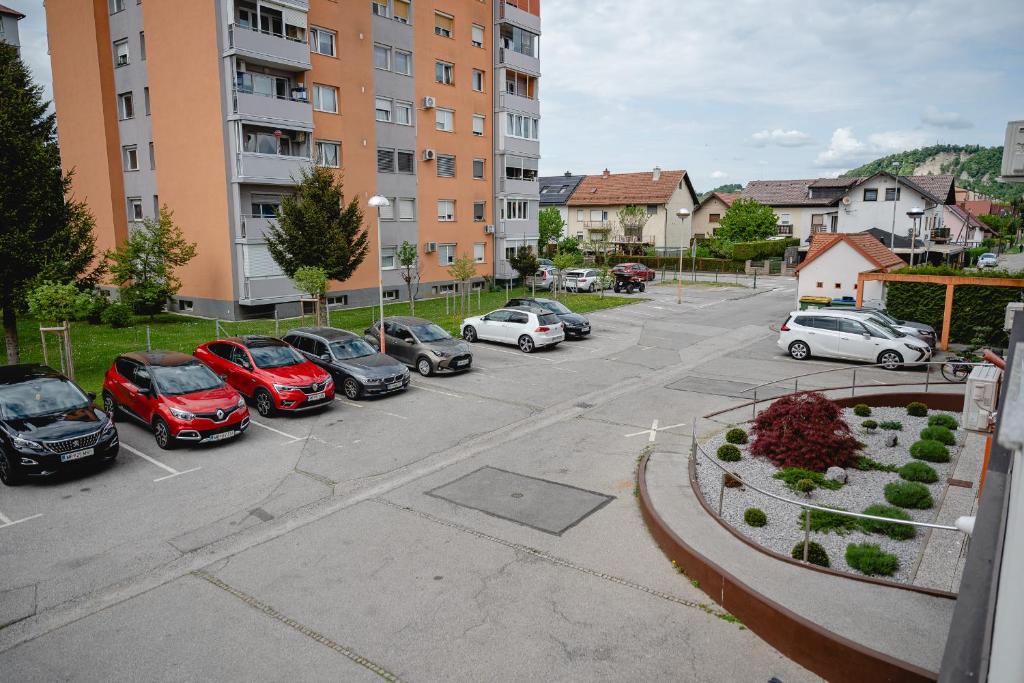Parkirišče: pred stavbo, urejeno in varovano z zapornico.