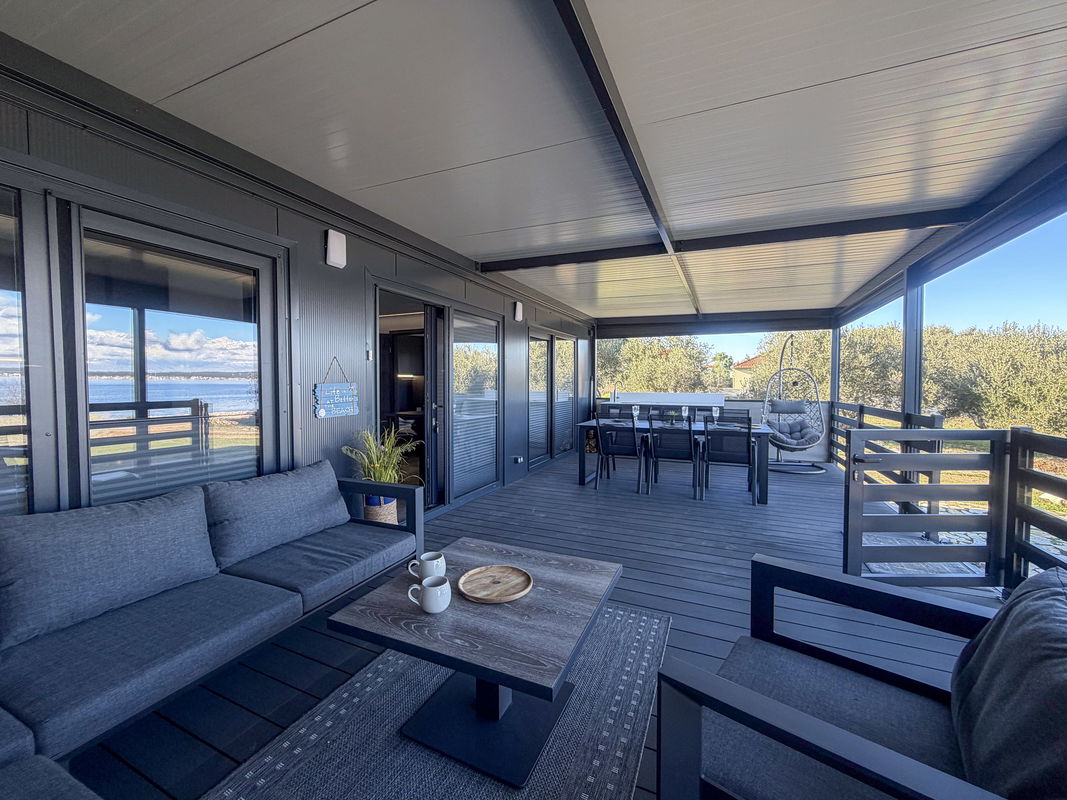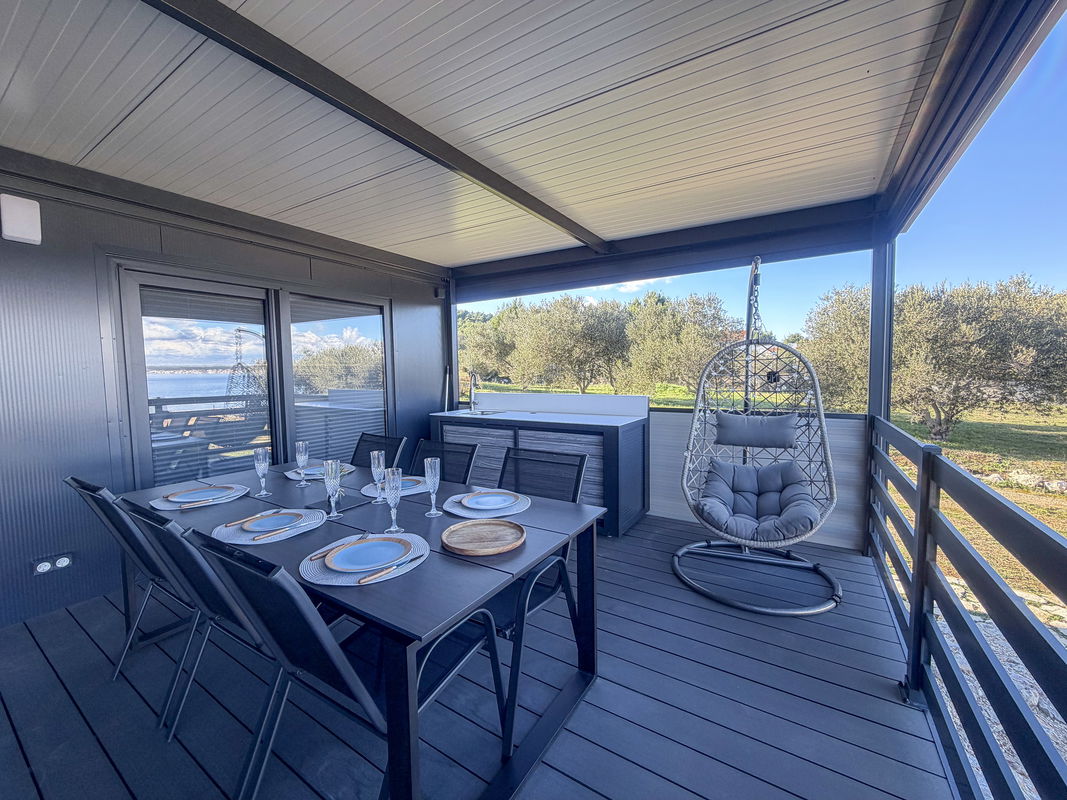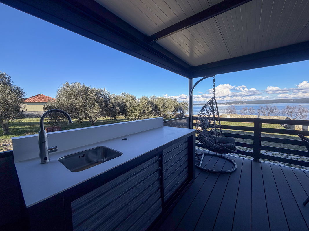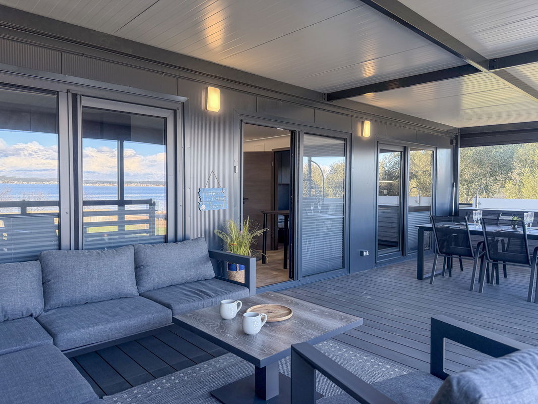 Mobilna hiška se nahaja na izjemni lokaciji v prvi vrsti do morja, v urejenem in mirnem mini kampu na otoku Pašman. Odlikuje jo čudovit odprt pogled na morje ter neposredna bližina urejene plaže, ki je oddaljena le nekaj korakov.